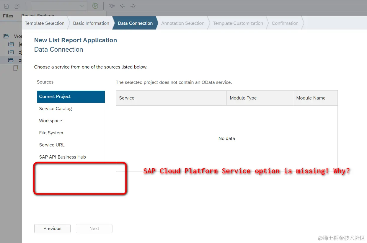 In your tutorial, the menu “SAP Cloud Platform Service” is in Data Connection wizard step:
