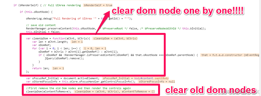 - 今天在看UI5 render的机制,发现在clear老的dom node的时候,是一个一个remove