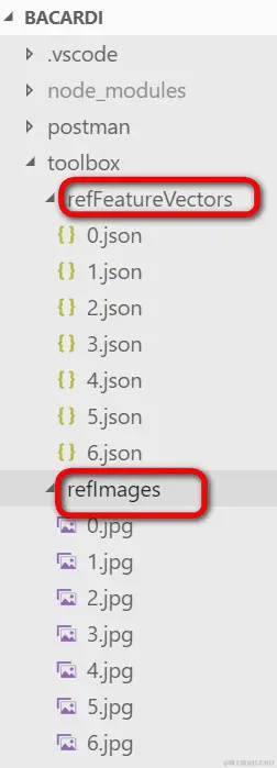 The image repository is maintained in the project consisting of two folders: refImages and refFeatureVectors, while the former stores each picture file itself, the latter stores its corresponding feature vector.