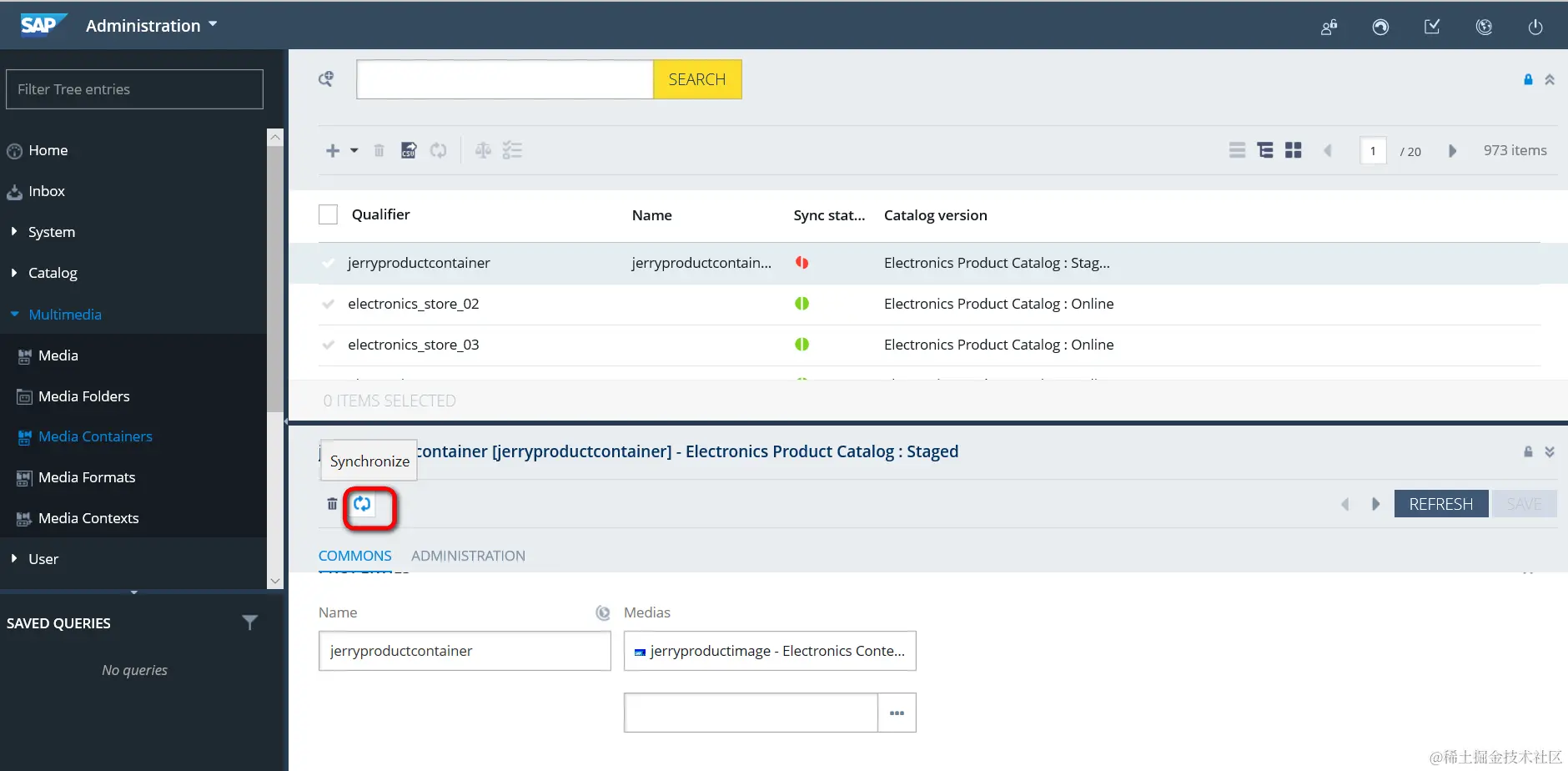 同步之后,就可以把这个media container分配给product了: