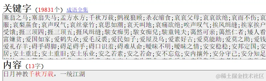 Jerry简单讲下实现原理。Web应用里有一个文本文件,里面维护了汉语里全部的成语,通过分号分隔。