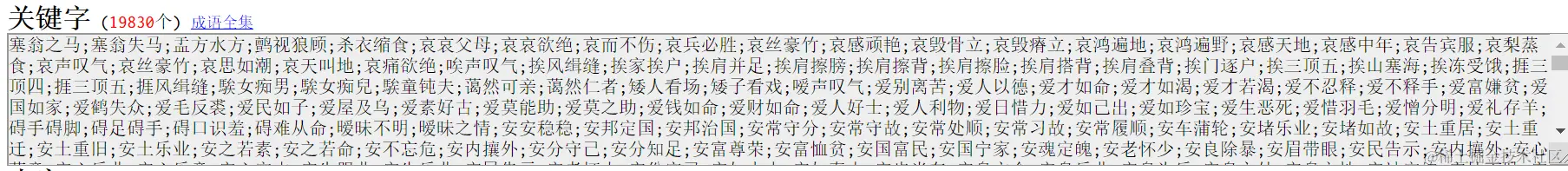 点击之后,存储于该web应用本地存储的一个文本文件里的全部19830个成语,以树的形式加载到内存中,并显示在网页上: