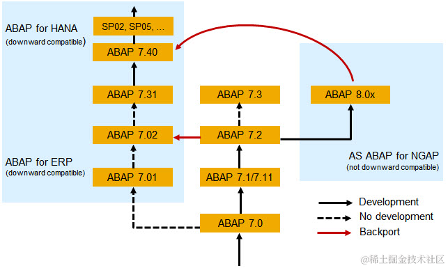 图中的ABAP 8.0, 即现在的SAP Cloud for Customer和Business By Design后台使用的ABAP版本NGAP - Next Generation ABAP Platform,里面存在不少只在8.0版本可用的关键字和语言特性。