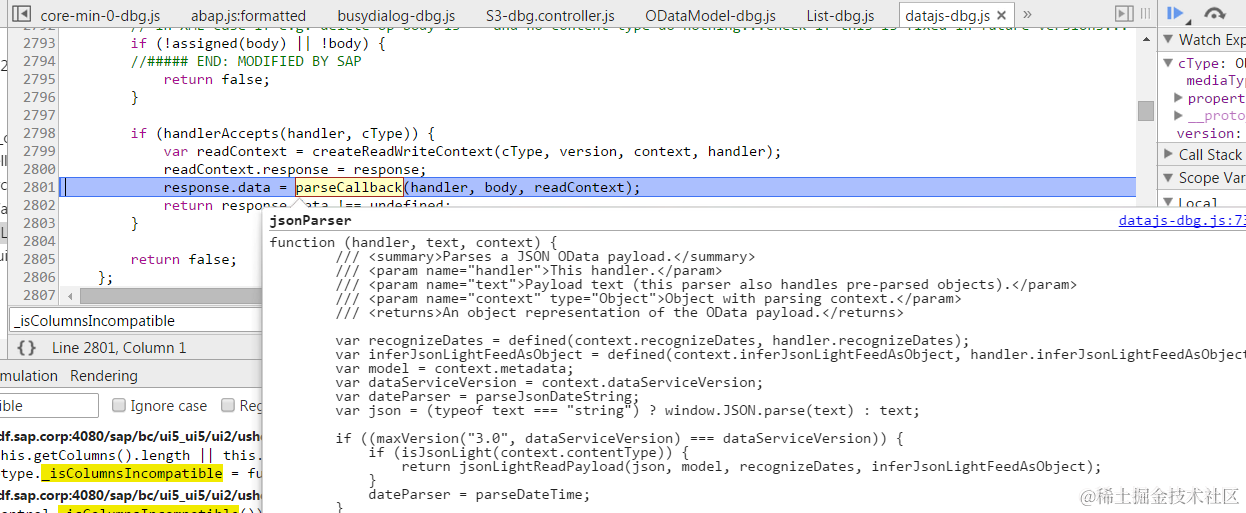 SAP UI5 datajs.js response handling 已注销 2021-04-25 81 阅读1分钟 Modified by SAP: enable jsonpCallback: false get content type: handlerAccepts: parseCallback: window.JSON.parse: 要获取更多Jerry的原创文章,请关注公众号"汪子熙":