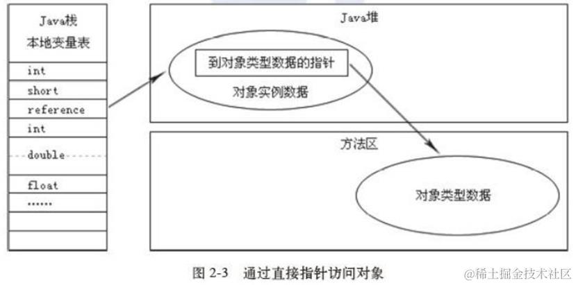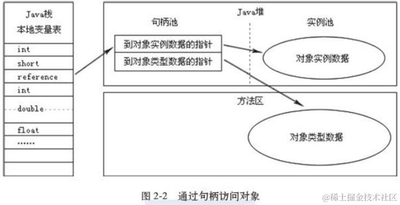 局部变量表存放了编译期可知的各种基本数据类型(boolean、byte、char、short、int、float、long、double)、对象引用(reference类型),它不等同于对象本身,根据不同的虚拟机实现,它可能是一个指向对象起始地址的引用指针,也可能指向一个代表对象的句柄或者其他与此对象相关的位置)和returnAddress类型(指向了一条字节码指令的地址)。