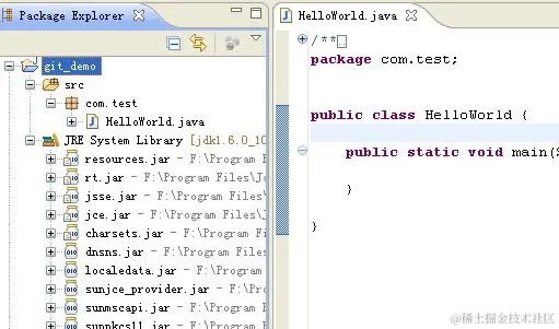 1、新建项目 git_demo,并新建HelloWorld.java类