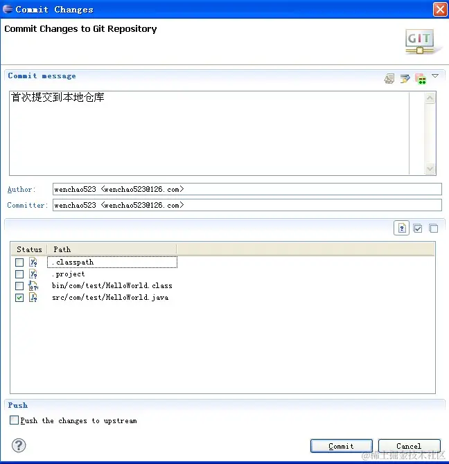 第二步:在本地进行commit操作将把更新提交到本地仓库;