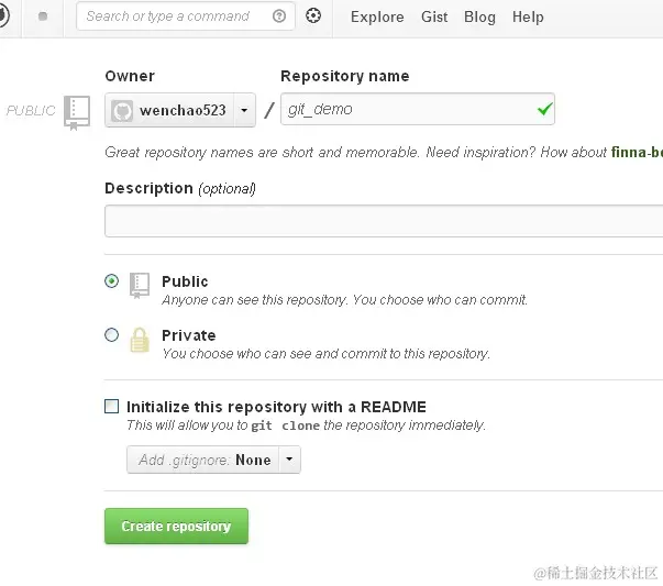 点击“Create repository” ,ok,这样在github上的仓库就创建好了。