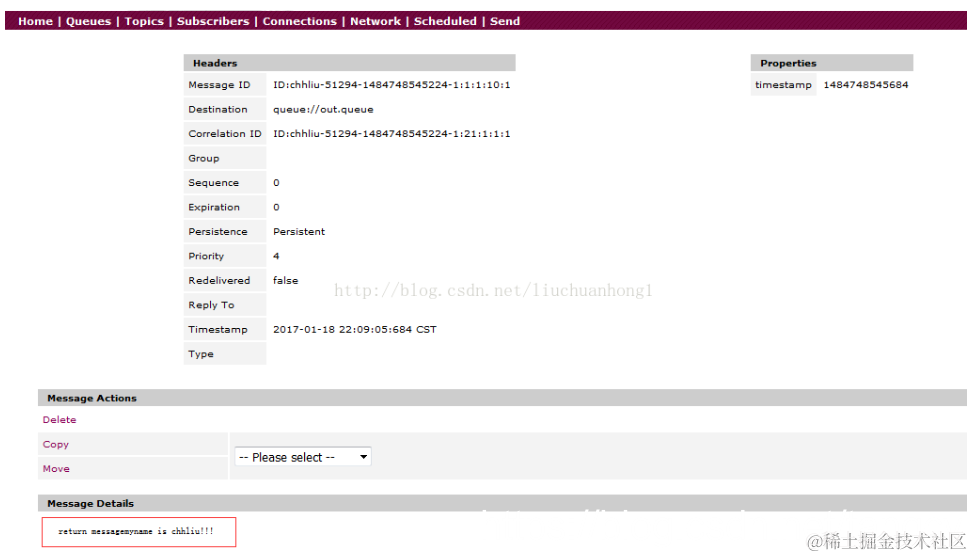 我们发现,该队列中的消息,就是我们返回的值!