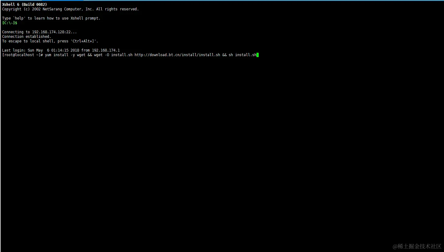 登录后在里面输入安装宝塔面板命令:yum install -y wget && wget -O install.sh download.bt.cn/install/ins… && sh install.sh