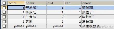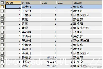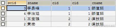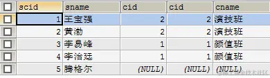 t_student学生表:scid、sname、cid