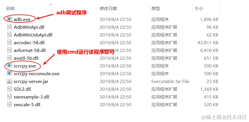 打开cmd定位到此目录(在地址栏中输入cmd回车),或者将该目录如D:\Github_Run\scrcpy-win64-v1.10加入到系统环境变量中,程序的使用都在cmd命令行中操作。