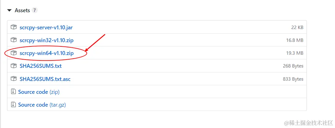 首先下载scrcpy,可去releases下载最新版本,目前最新版本为v1.10。