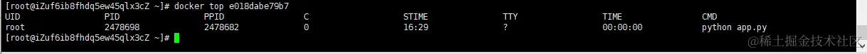 docker top 来查看容器内部运行的进程: