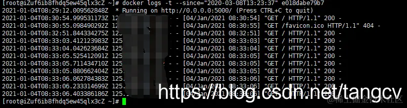 docker logs -t --since="2020-03-08T13:23:37" e018dabe79b7