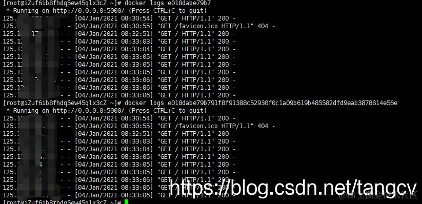 docker logs [ID或者名字] 可以查看容器内部的标准输出:
