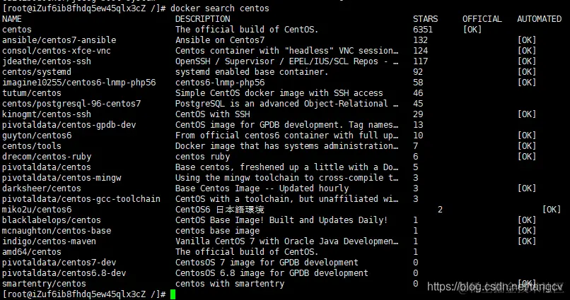 例如: 搜索centos相关的镜像