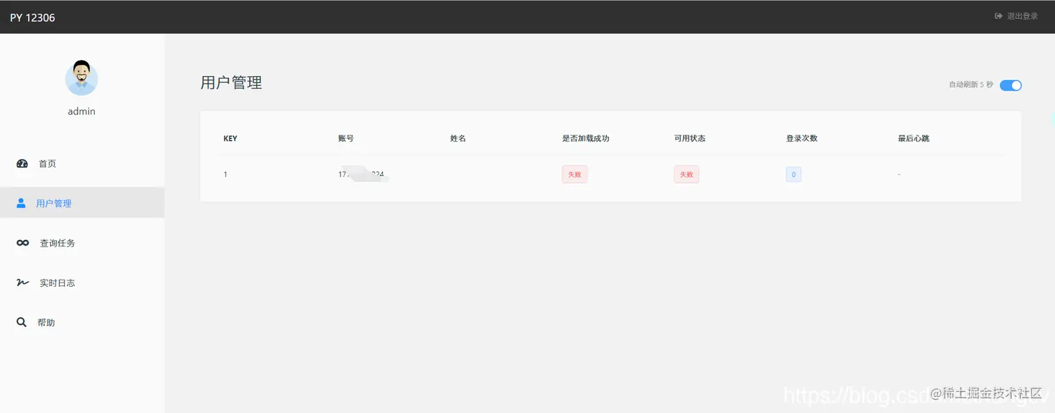 账号密码 (文件env.py里 WEB_USER 里 设置,默认 登录账号:admin 登录密码:password)