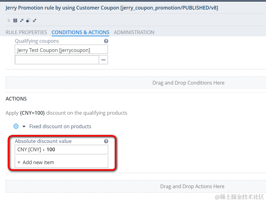 在菜单Marketing->Promotion Rules里,创建一条新的促销规则Promition Rules: