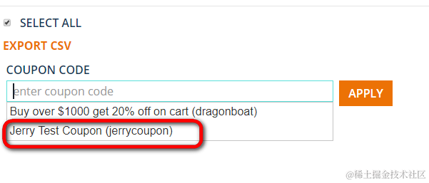 从下拉列表里选择名为jerrycoupon的优惠券,点击Apply: