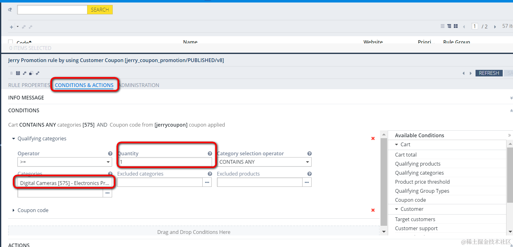 当购买金额Quantity大于1,且购买的产品种类是575,数码相机时,触发这条规则。
