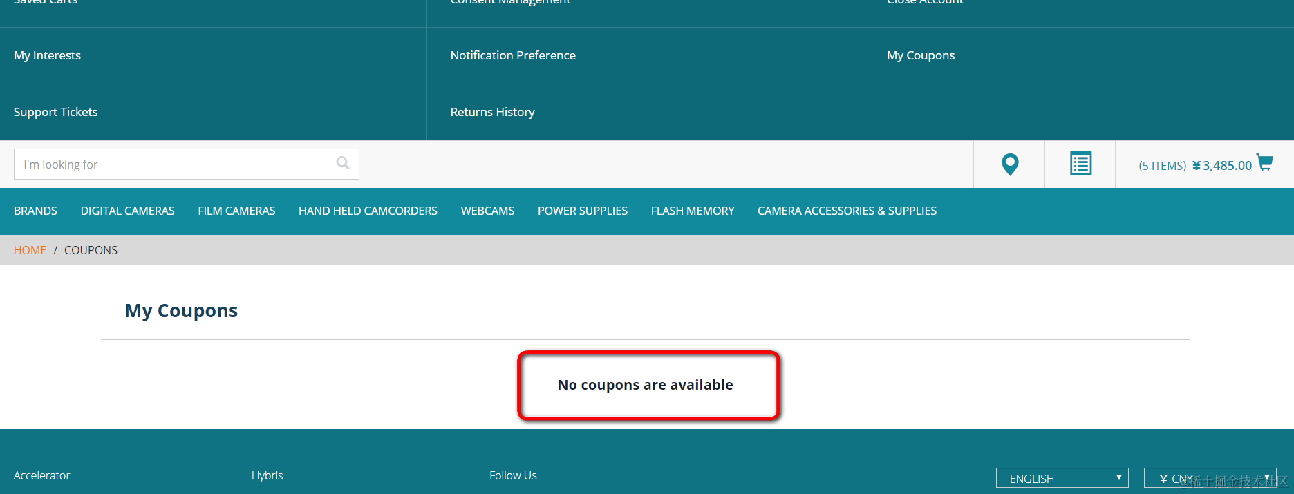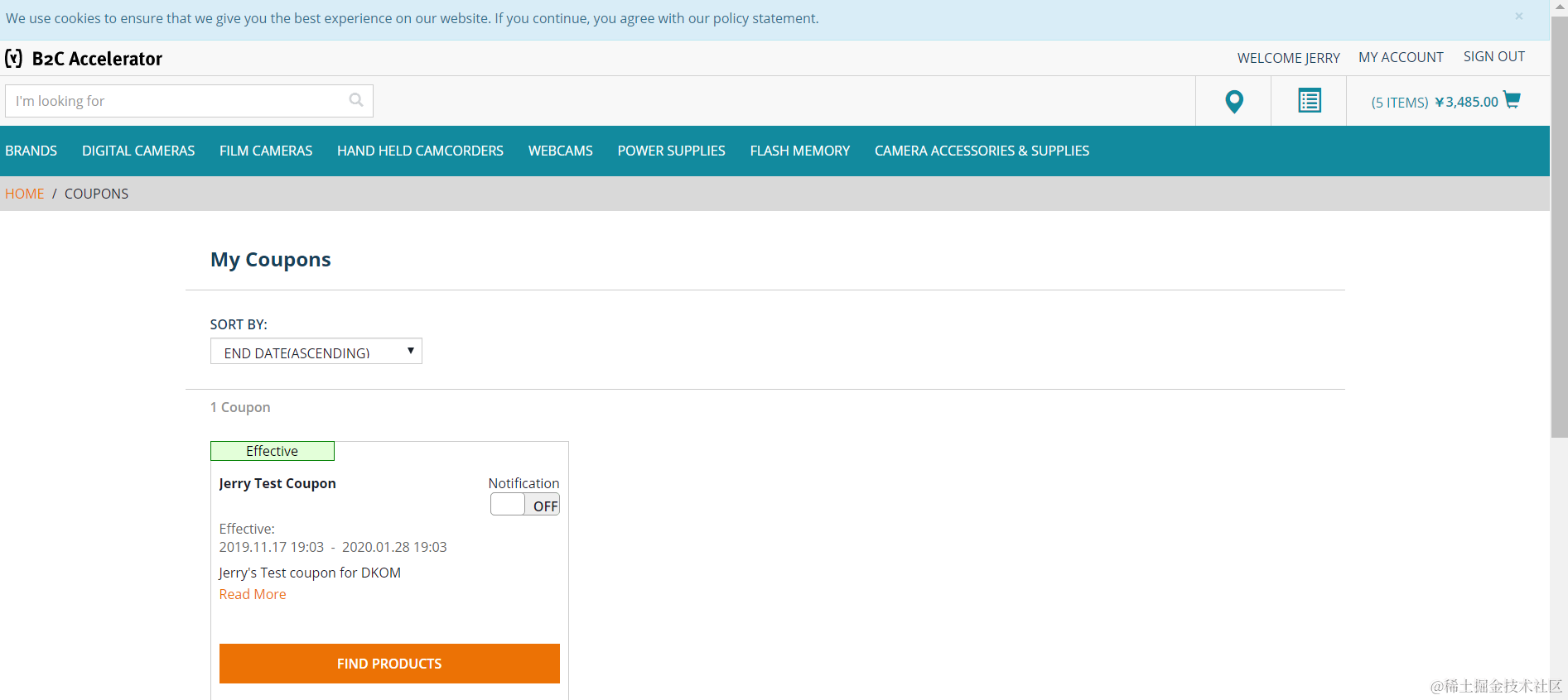 用户Jerry登录storefront,在My Coupon里没有发现任何可用的coupon: