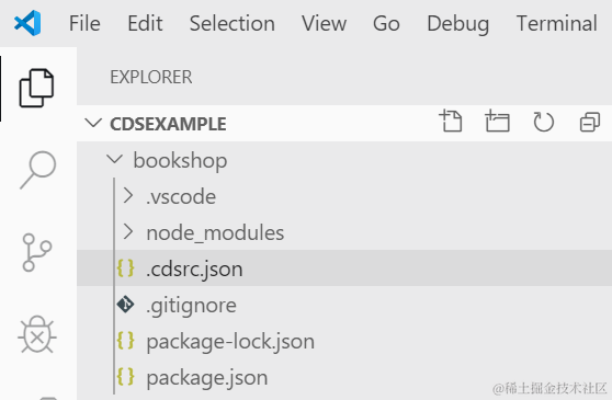cds init执行完毕后,打开Visual Studio Code,界面如下,这些全是cds init自动生成的: