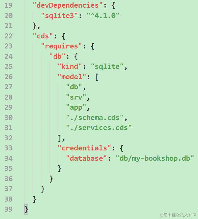 根据cds deploy命令的输出提示,package.json也相应被更新了: