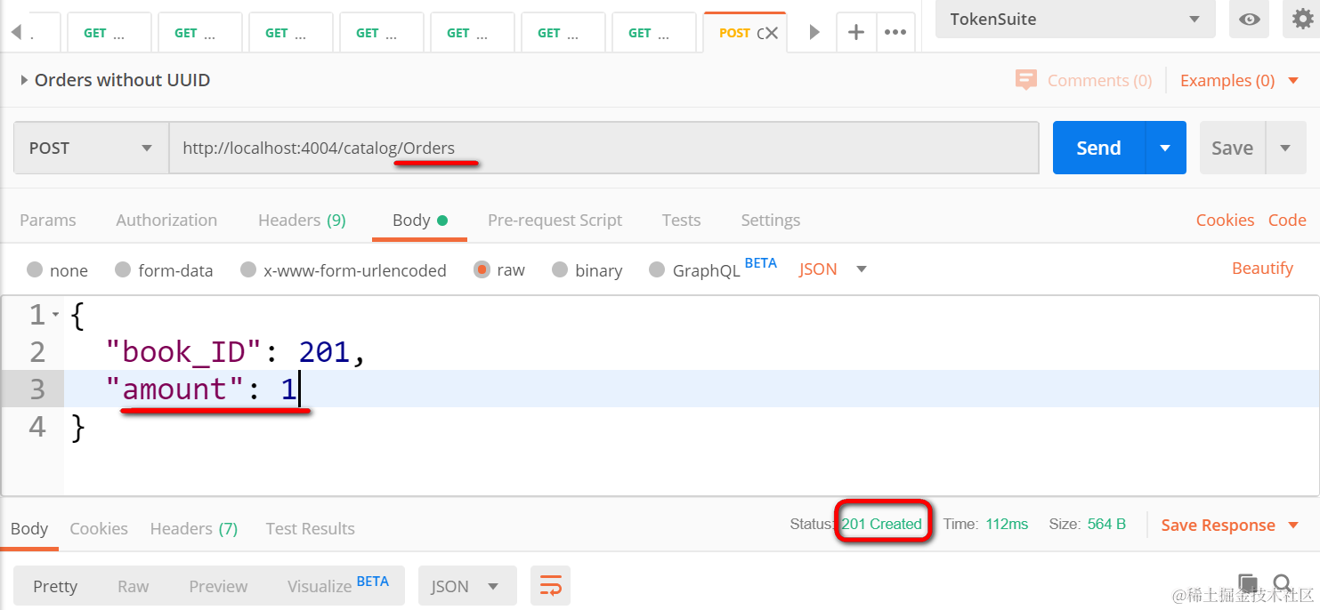 然后进行测试:在postman里执行post请求,下单再买一本: