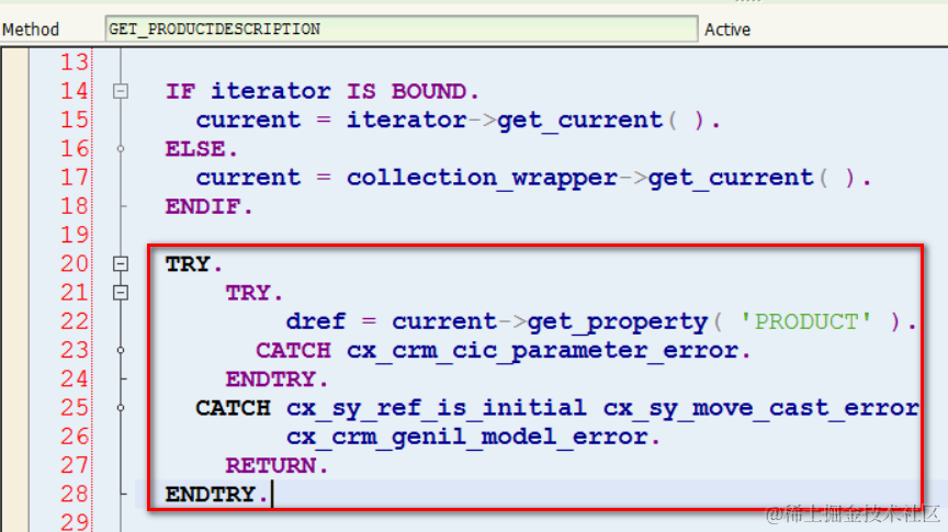 这种ABAP错误处理不对。如果在方法调用后用sy-subrc evaluate, 必须要求方法里用non-OO的方式declare了exception。如果用TRY CATCH,要求方法体里raise OO的exception。