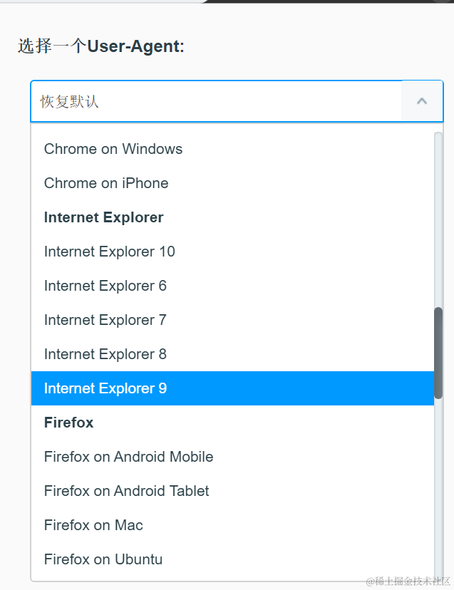 不光能选择移动设备对应的User-Agent,还能选择模拟各种类型的浏览器,比如360浏览器,猎豹浏览器等。