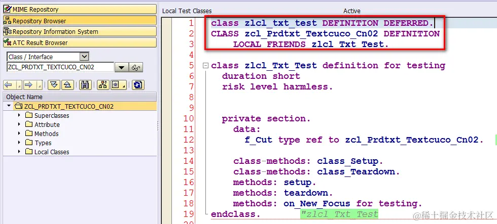Since usually we will manipulate private attributes of CUT ( class under test ) so insert the following code into header part of local test class, so that local test class can modify private attributes of CUT.