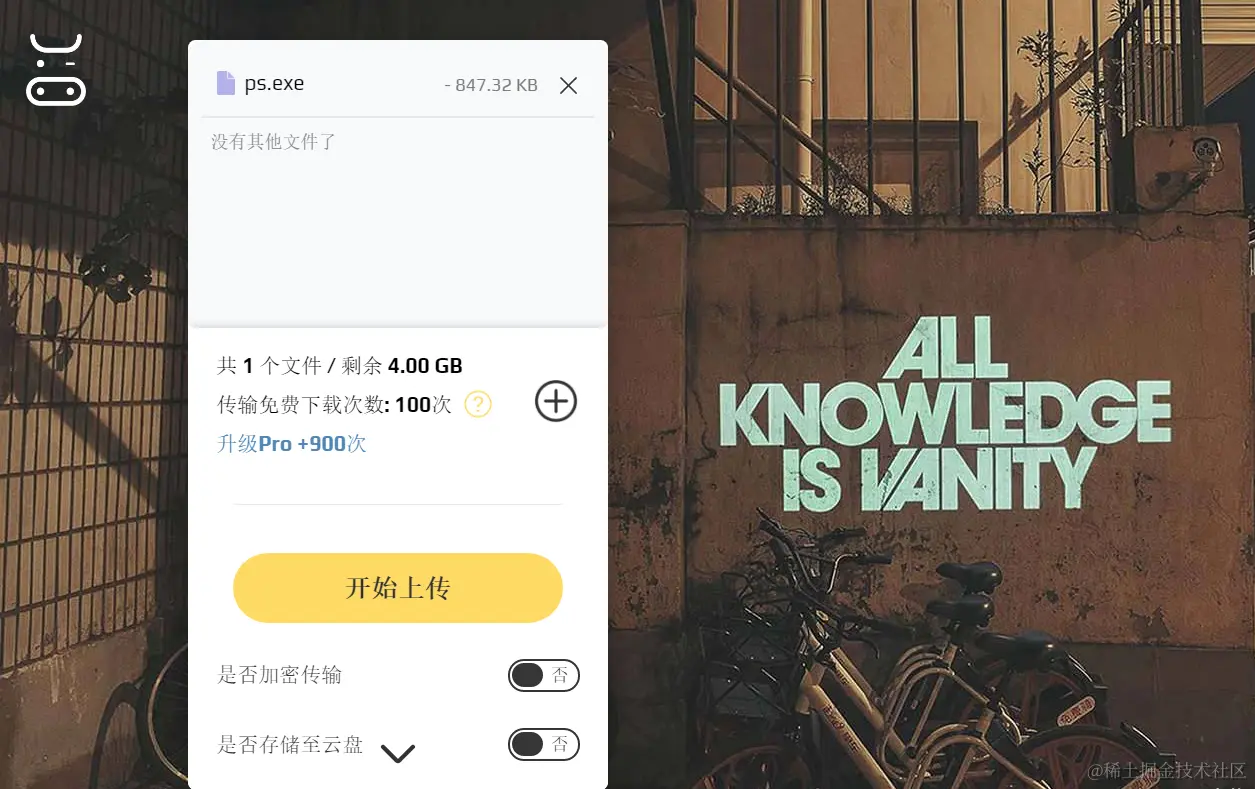 有的时候我们想将一些比较大的文件(比如100MB)传给网络另一端的朋友,但是用QQ和微信传又不太方便,此时可以使用奶牛快传这个可以临时提供文件上传和下载的网站。