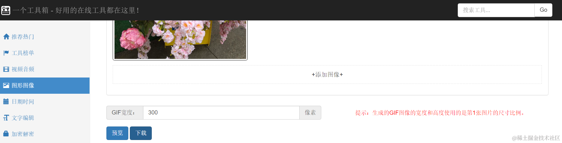 点击预览可查看效果,点击下载,可以把生成的gif下载到本地。