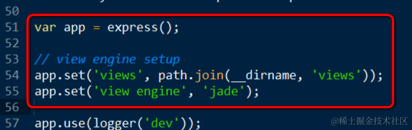在nodejs代码中使用如下代码设置express返回的app实例使用的视图引擎: