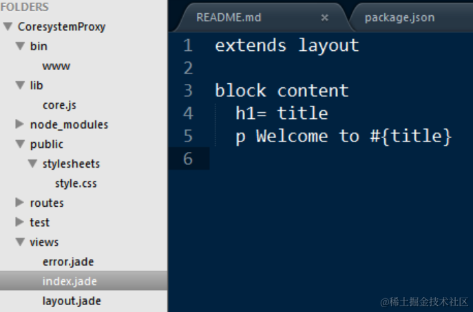 在views文件夹里新建一个同名视图模板index.jade,内容如下: