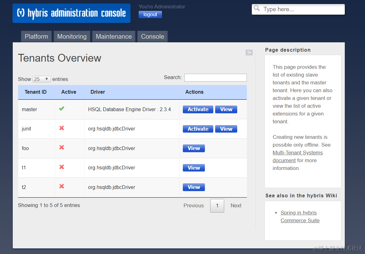 Platform的tenant视图,点击View按钮查看tenant明细: