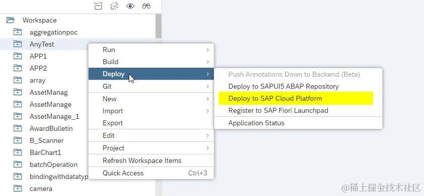 (1) 首先在WebIDE里把开发好的SAP ui5应用部署到SAP Cloud Platform上: