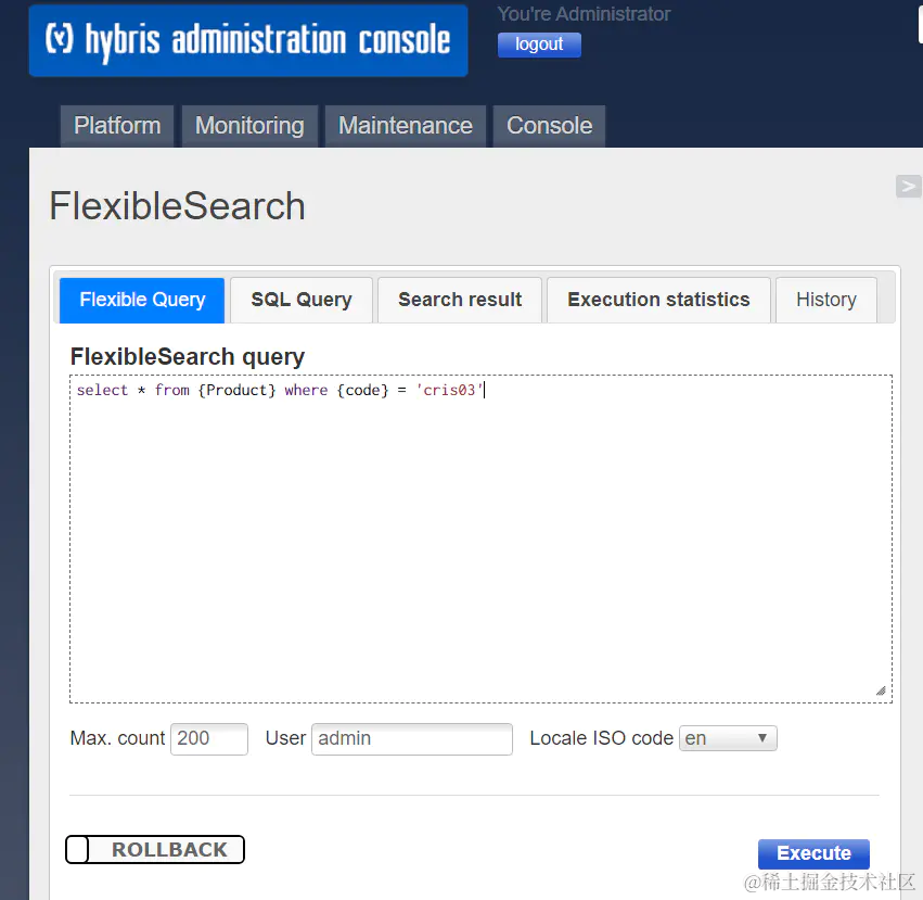 下图是SAP Hybris Commerce Flexible Search的例子: