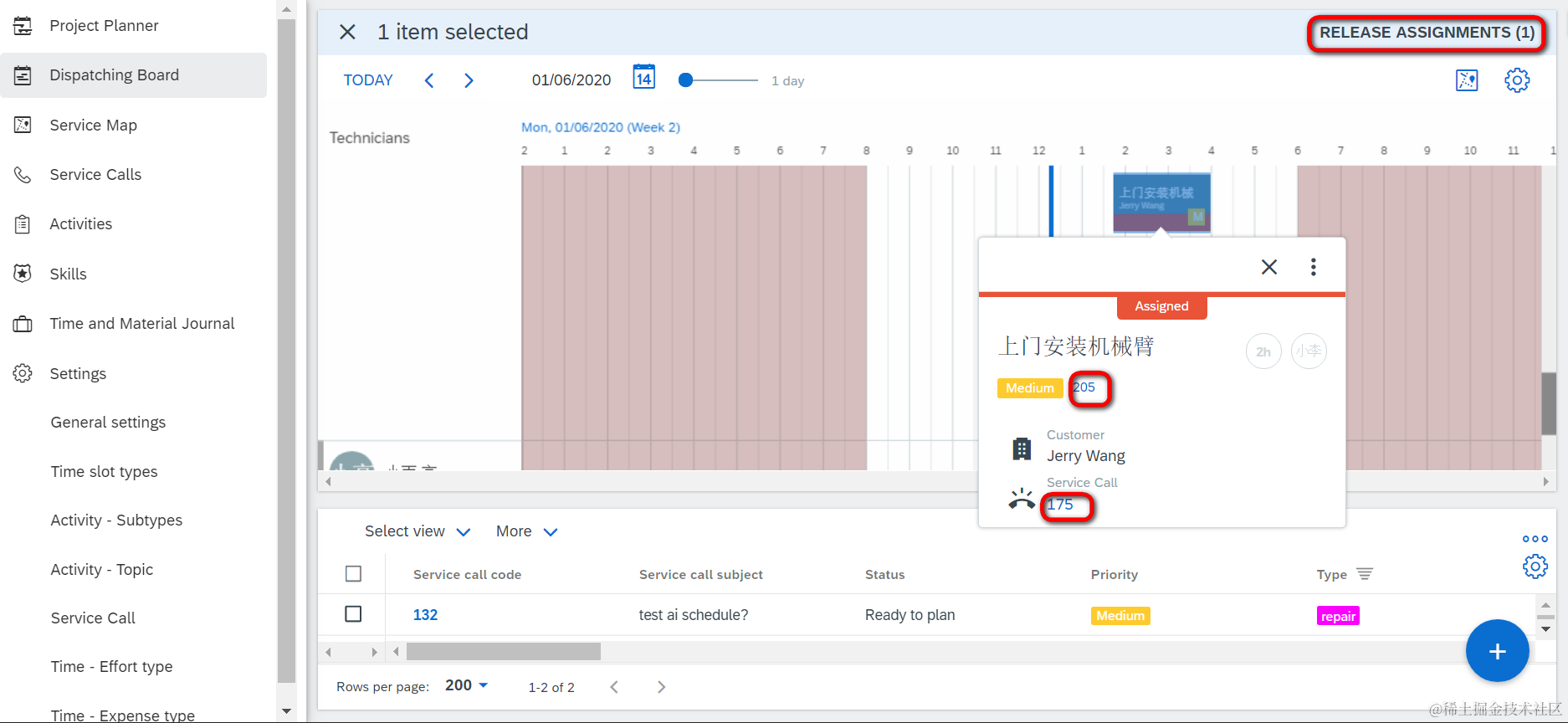 调度员选择一条我刚刚在微信里创建的预约,点击Release Assignments, 即可完成派工。