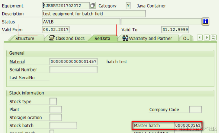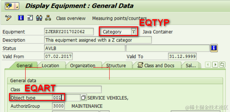 The fields in ERP ( tcode IE03 ):