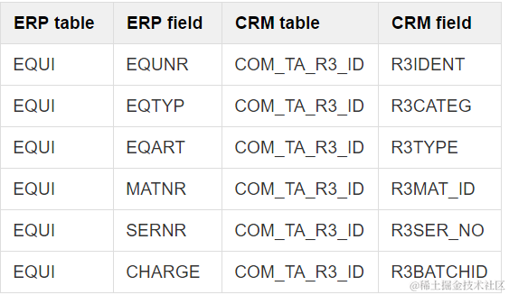 Several fields of Equipment header will be persisted to settype COM_TA_R3_ID in CRM. The mapping logic between the two systems could be found from program LIB_CRM_EQUI_UPLOADF22, form set_com_ta_r3_id.