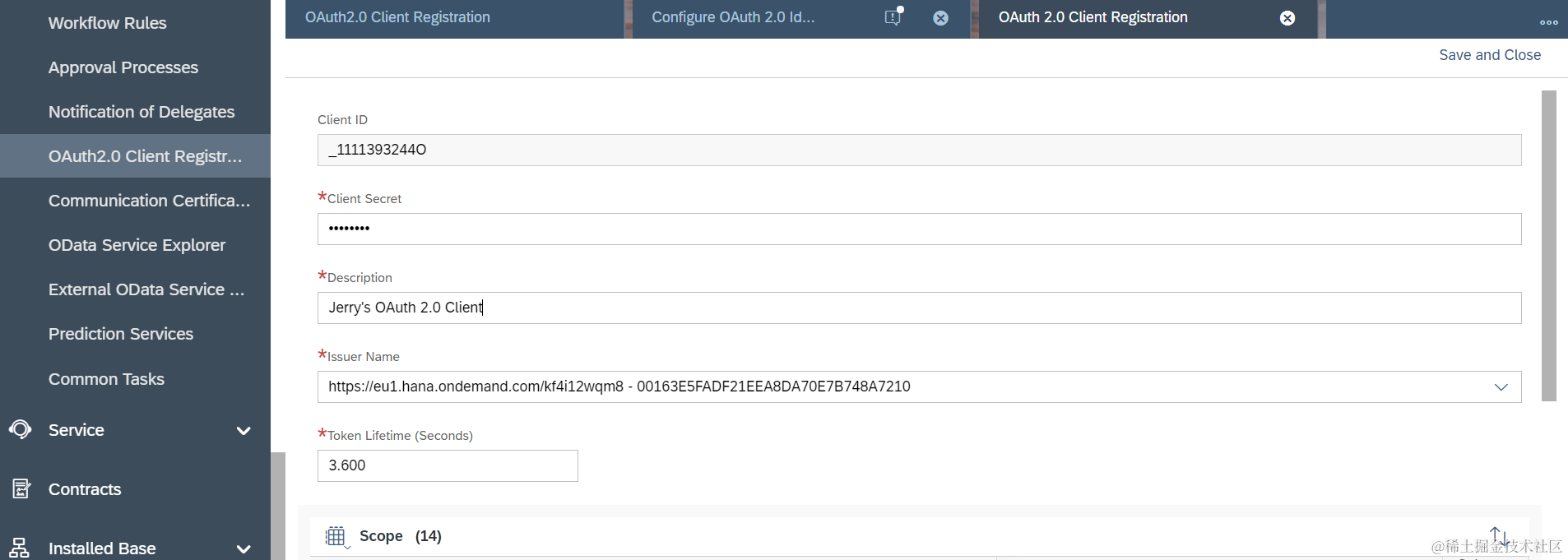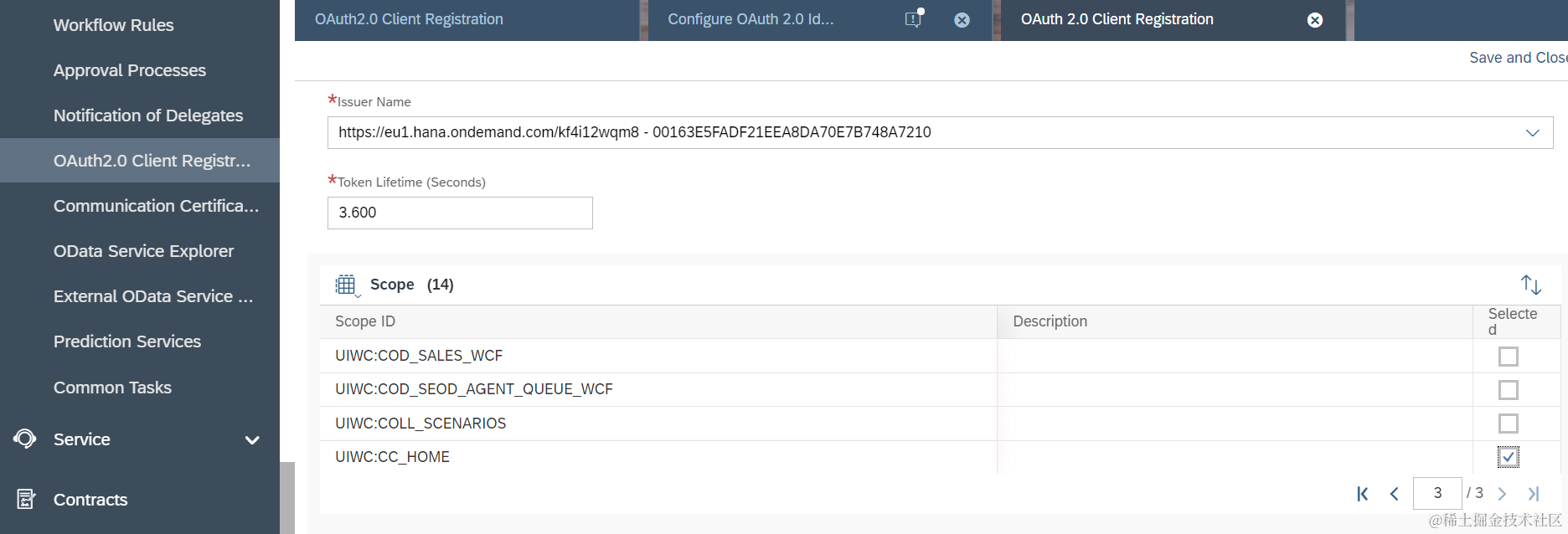 Issuer Name字段的值,从下拉列表里选择刚刚新建的OAuth 2.0 Provider: