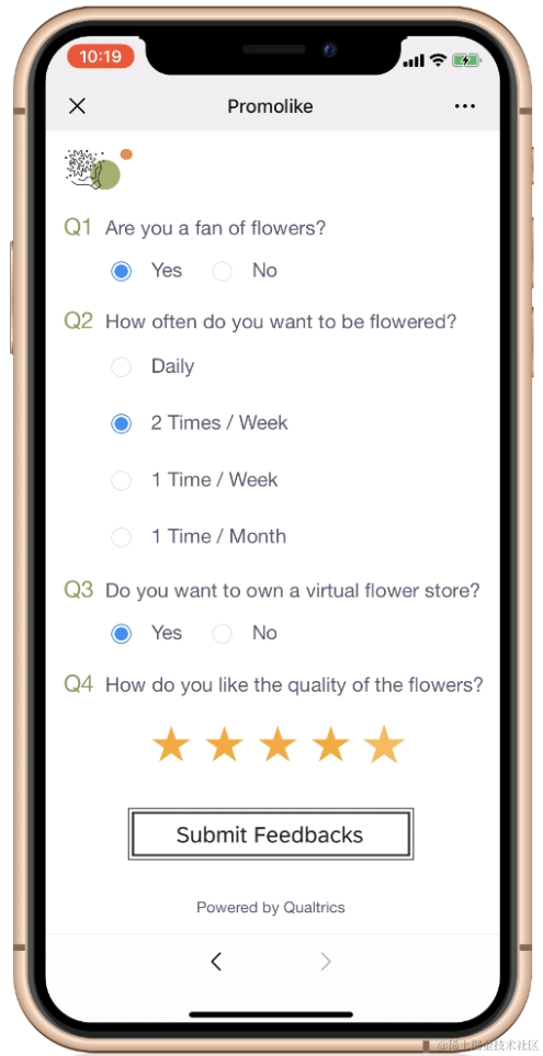 点击Share Feedbacks之后,Jane的微信会跳转一个基于Qualtrics的调查问卷页面去。