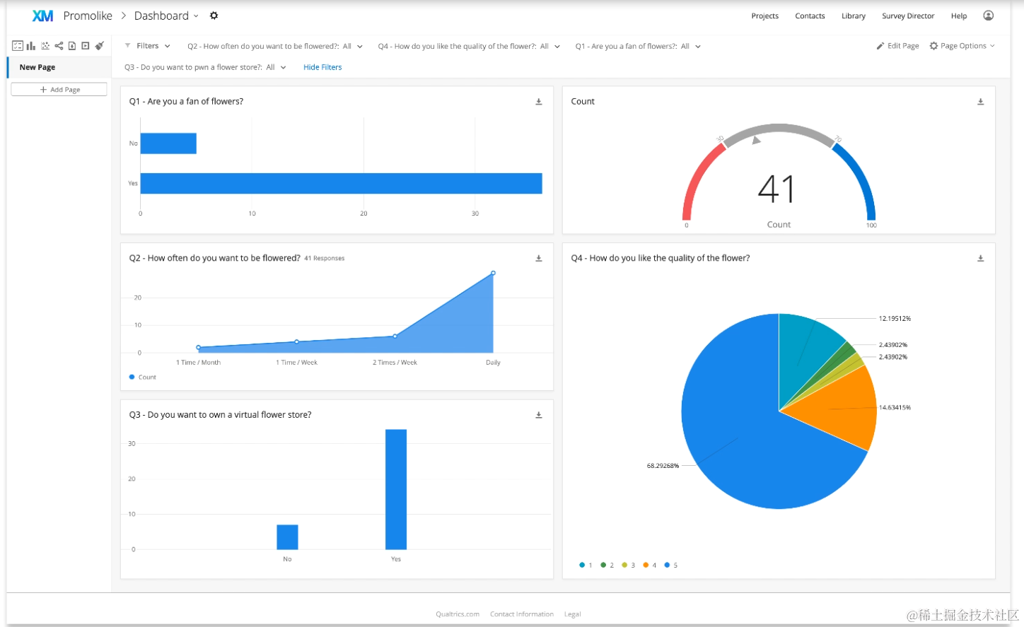 Jane在调查问卷里填写的反馈可以在Qualtrics dashboard里看到: