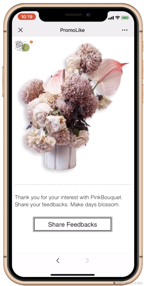 其他朋友扫描Jane的虚拟花店的微信二维码,能浏览Jane虚拟花店里的鲜花,下单购买: