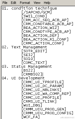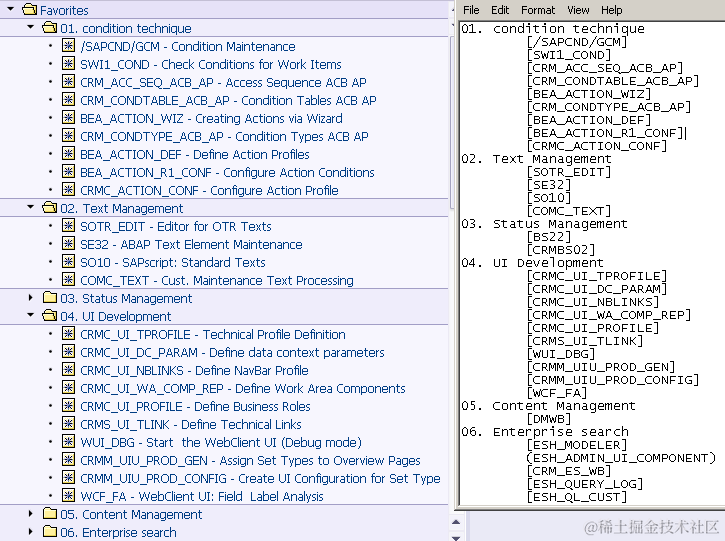 上图的01. 02. 03开头的内容代表的是SAP GUI里生成收藏夹的文件夹名称,方括号内即事务码本身的值。操作记事本,比用鼠标在SAP GUI里做拖拽操作轻松多了,不是吗?