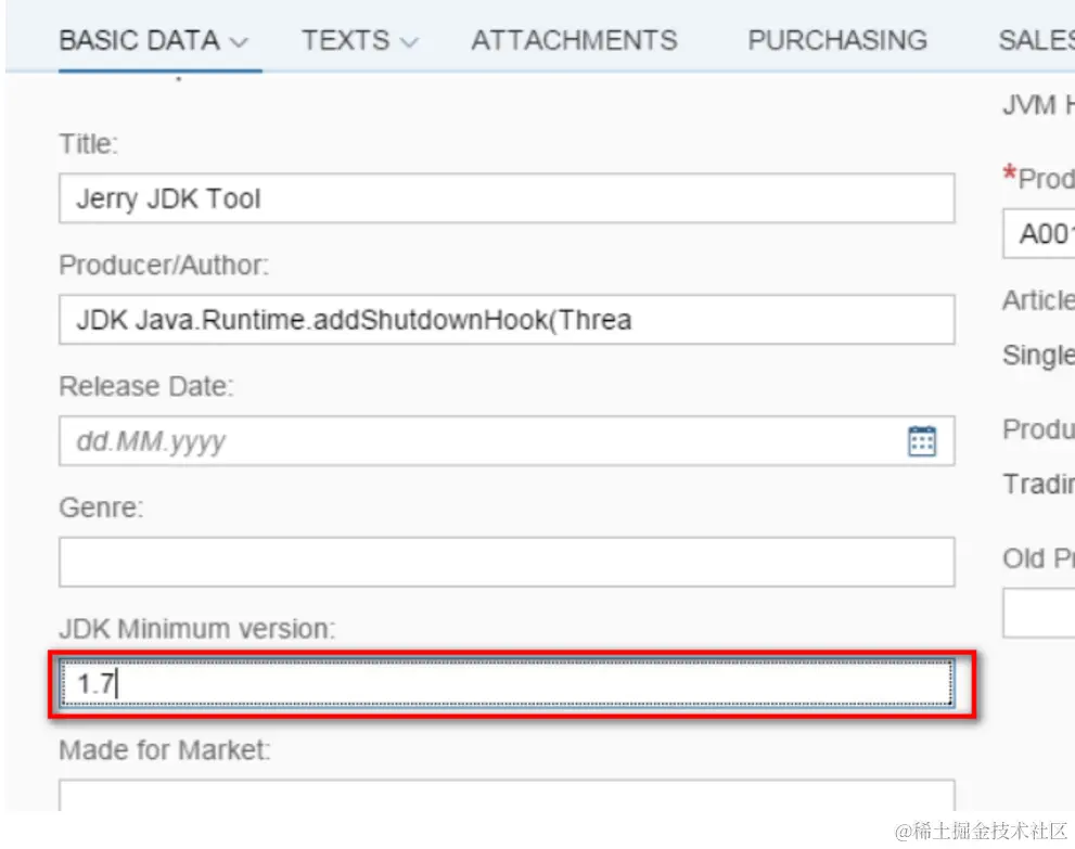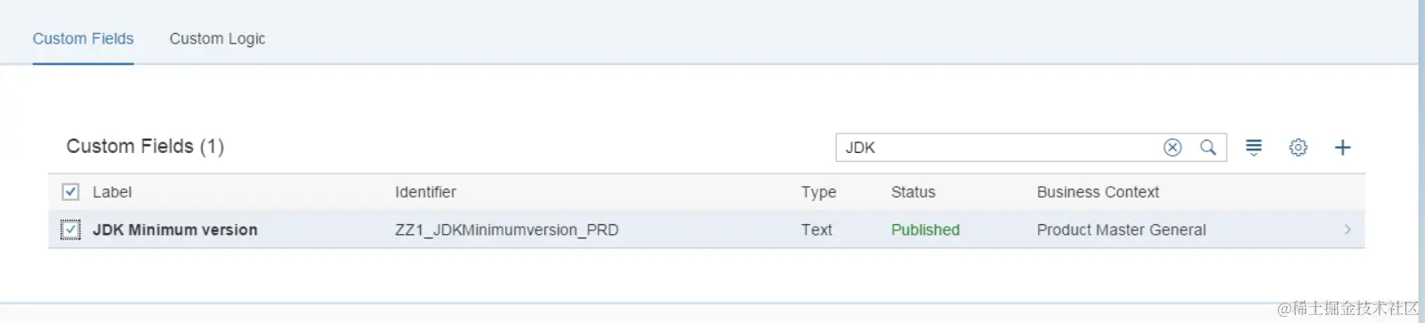 I have created the following extension field on business context : product master general