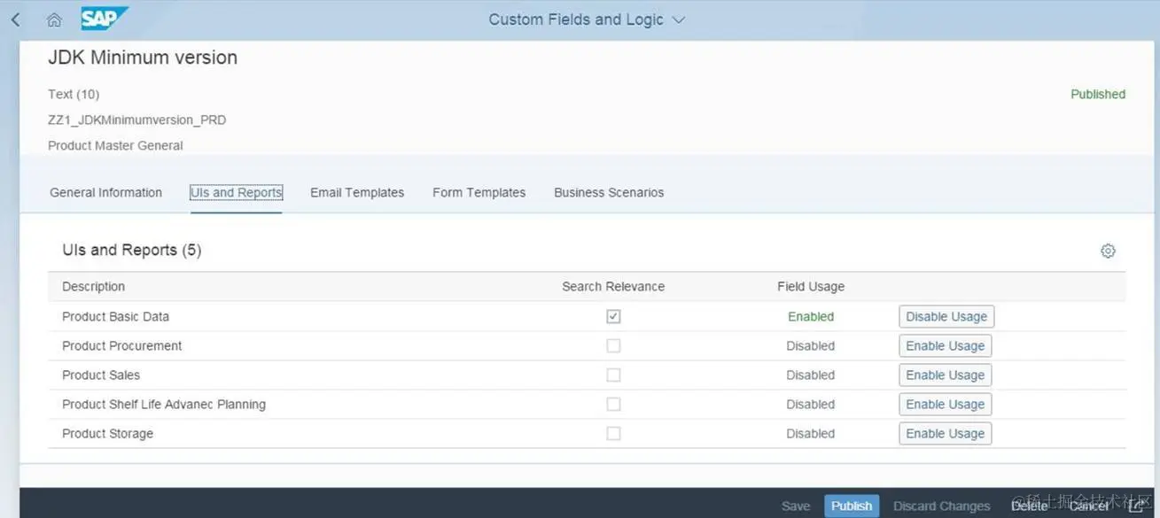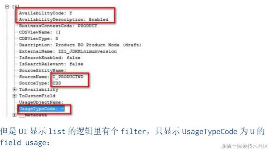 问题就是不同的系统这个 UIs and Reports 里的显示逻辑不一样。 在 GRE210 连 XT9/715 上,里面只会显示 OData 出来,我 debug 了前后台, 后台返回的 Usage 数据里,说明这个做在 business context PRODUCT 上的 extension field 能加在 view I_PRODUCTWD 上,因为其 AvailablityCode 是 Y