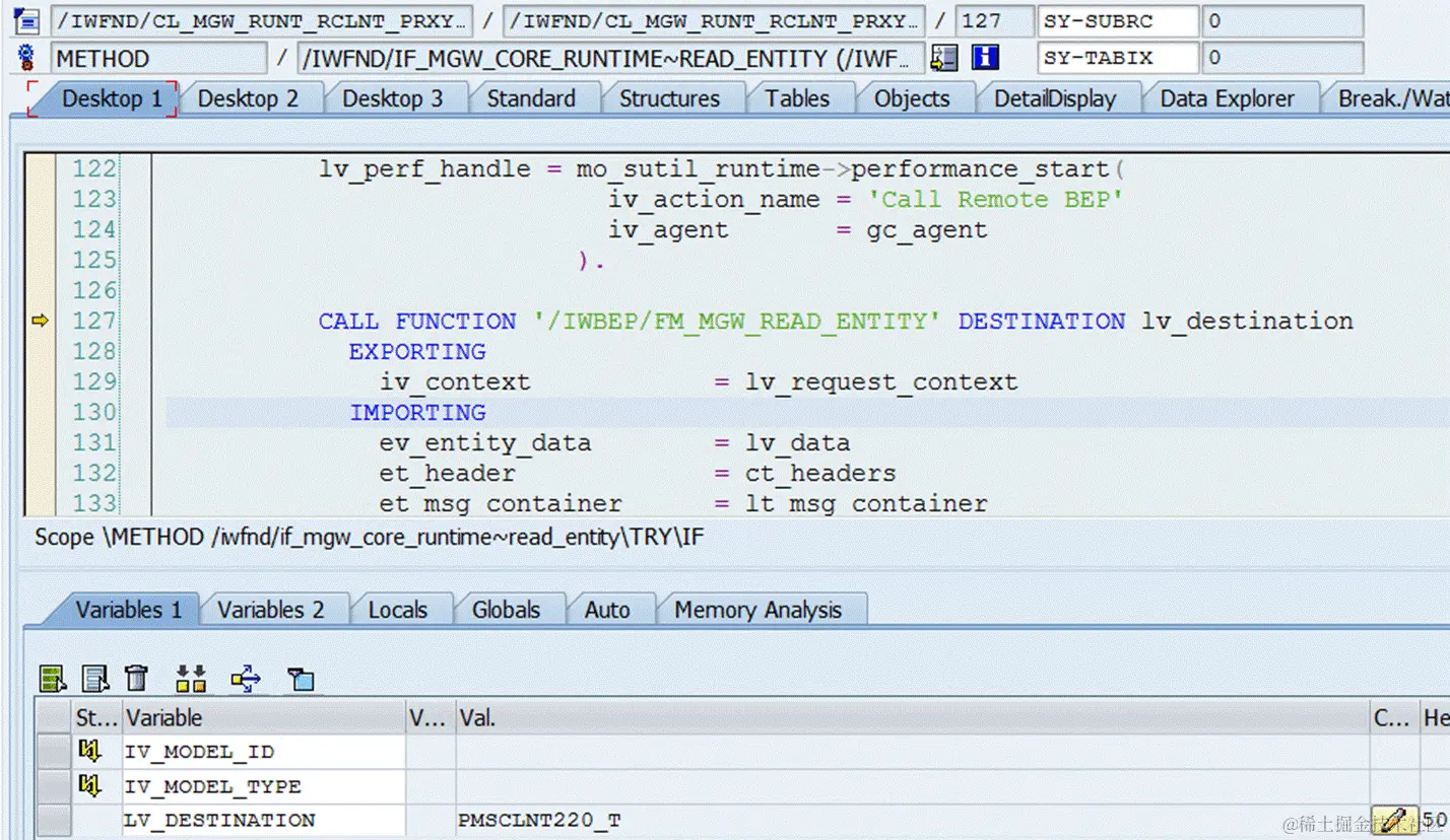 在CRM的这个FM上设个断点,发现断点已经被触发了。